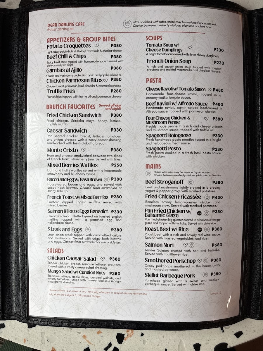 Welcome to Dear Darling Cafe, a delightful culinary spot nestled in Quezon City. This cafe offers a charming atmosphere that feels like a hidden gem, where artful decor meets comfortable seating. The menu is a delightful journey, perfect for brunch enthusiasts and dessert lovers alike.